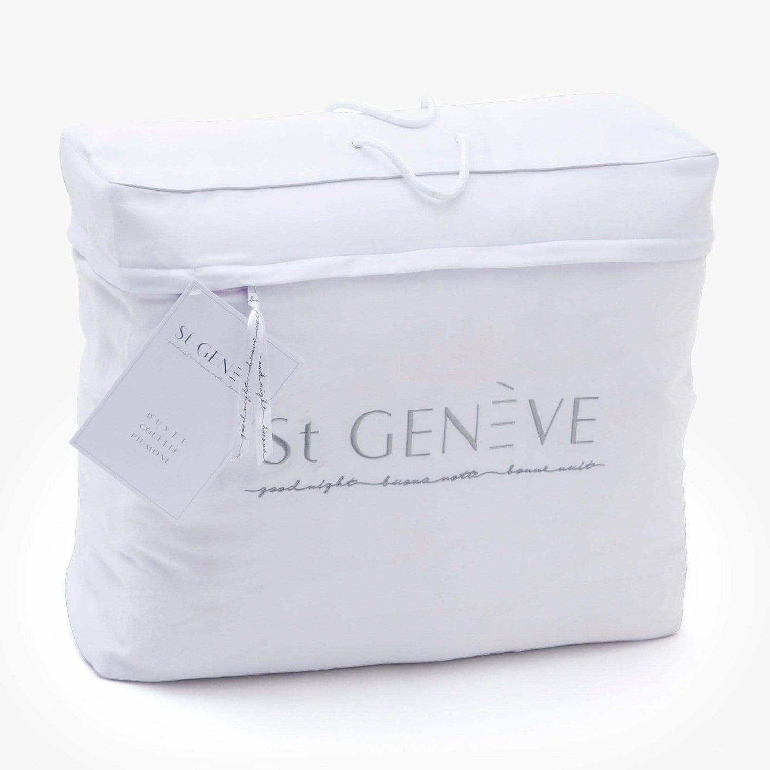 - Corner attachment points for securing to the inside corners of a compatible duvet cover (including any St Genève duvet cover), preventing your duvet from migrating to the bottom of the cover